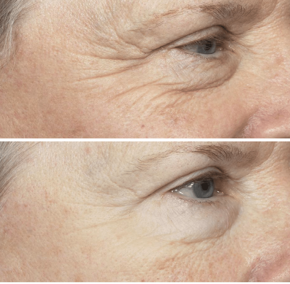 - Fine lines and wrinkles – like crow’s feet and brow lines